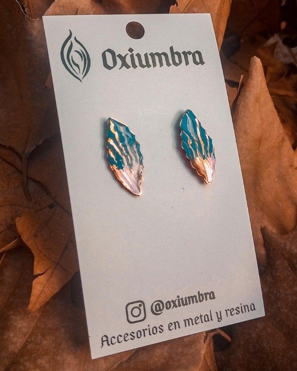 Mini Aretes Hoja (cobre y celeste)